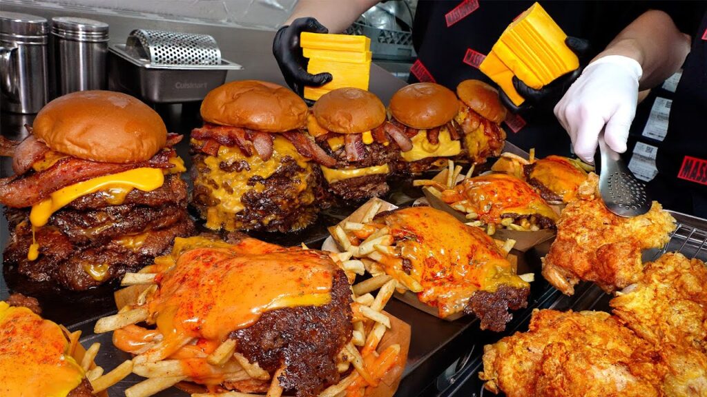 From the very first second, this video immerses you in the heart of a bustling Korean street food scene, but with a delicious twist — an all‑out American classic: the 400℉ smash burger. You’ll witness firsthand how this iconic double cheeseburger is prepared with precision, passion, and that signature high‑heat technique that creates a perfect crust while keeping the inside incredibly juicy. The contrast between the smoky char, the melted cheese, and the soft, warm buns makes this an unforgettable culinary experience — all captured in stunning high definition.