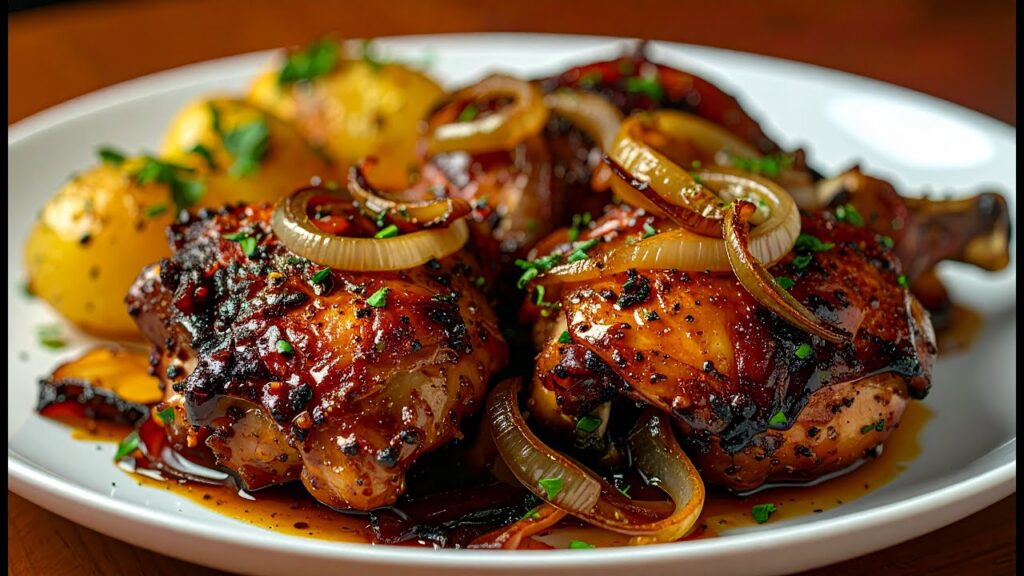 As the chicken cooks, the kitchen fills with an irresistible aroma — warm, comforting, and festive. It’s the kind of smell that instantly brings everyone together and builds excitement for the meal ahead. When served, the chicken is tender, flavorful, and perfectly balanced, making every bite feel like a celebration.